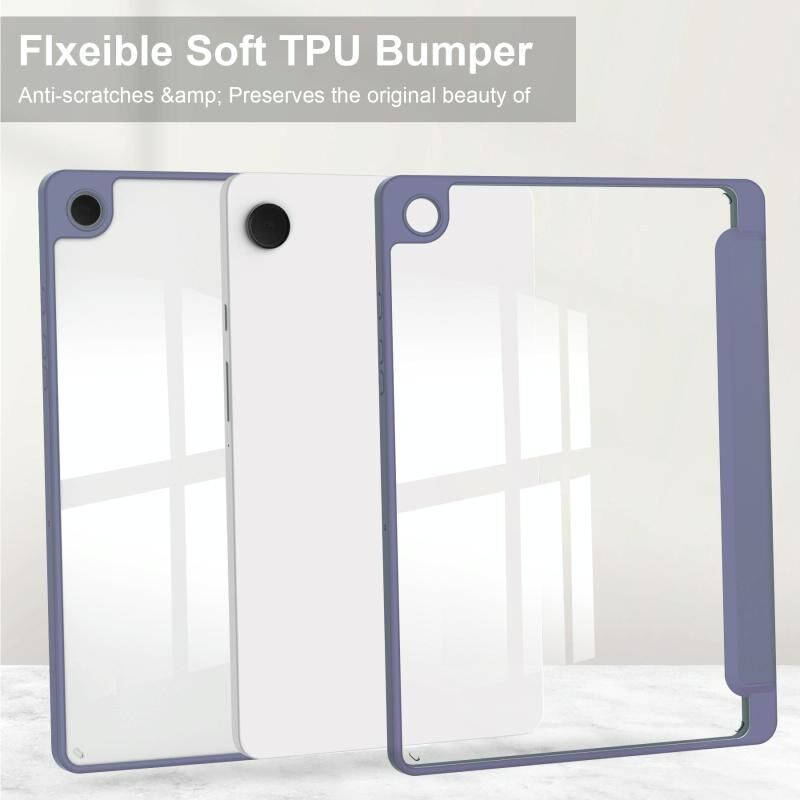 Για Samsung Galaxy Tab A9+ Ακρυλική 3 πτυσσόμενη έξυπνη δερμάτινη θήκη για tablet με υποδοχή για στυλό (λεβάντα)