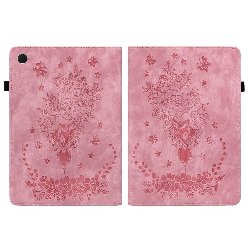 Θήκη Ταμπλέτας Δερμάτινη με ανάγλυφο σχέδιο Butterfly Rose για Samsung Galaxy Tab A9 (Ροζ)