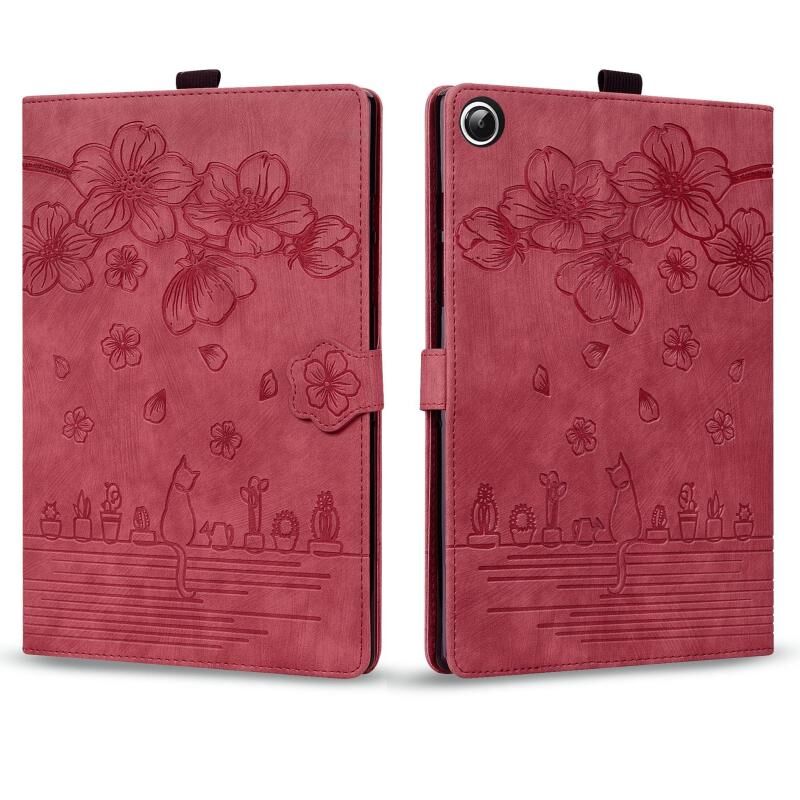 Θήκη ταμπλέτας Samsung Galaxy Tab A9 από δέρμα με ανάγλυφο σχέδιο καρτούν Sakura Cat (Πράσινο)