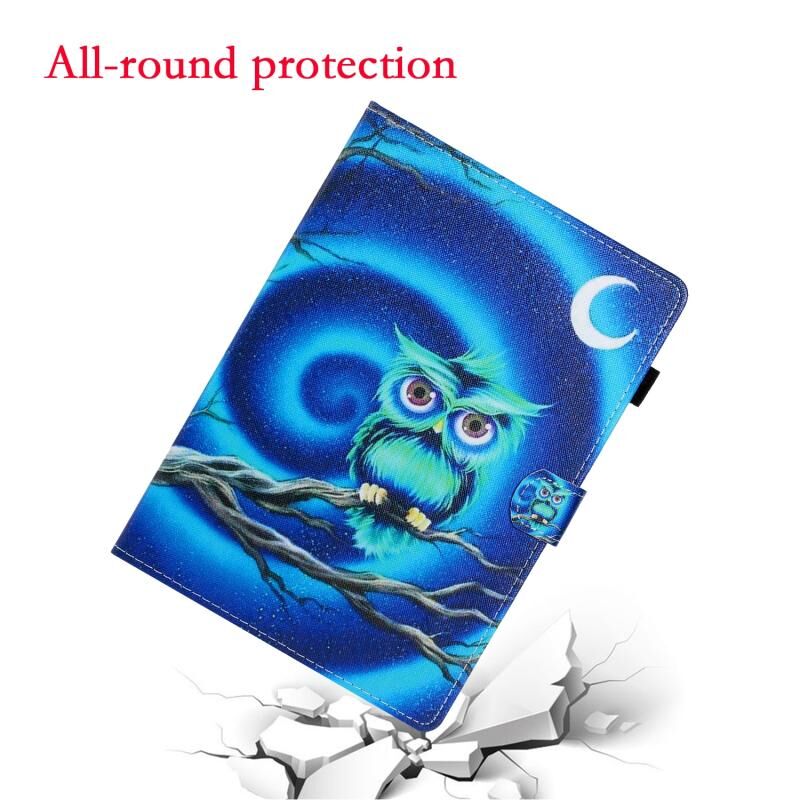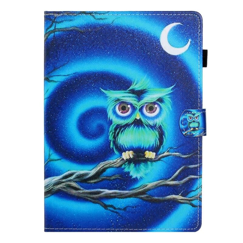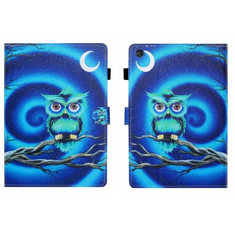 Θήκη ταμπλέτας Samsung Galaxy Tab A9 από δέρμα PU με ραφές και σχέδιο (Moon Owl) με λειτουργία αυτόματης αφύπνισης/ύπνου.