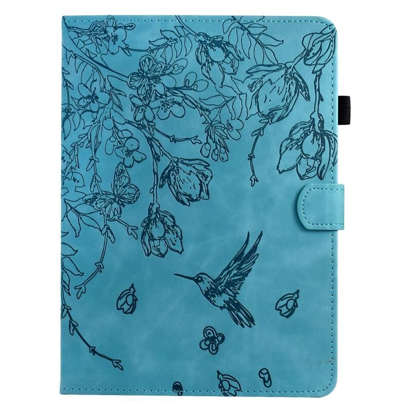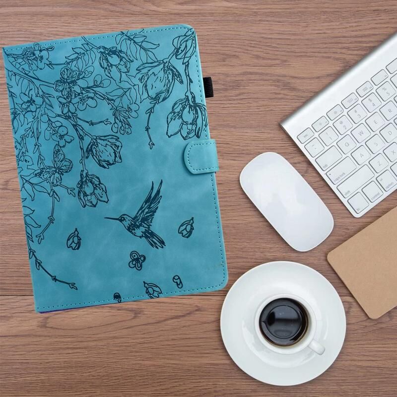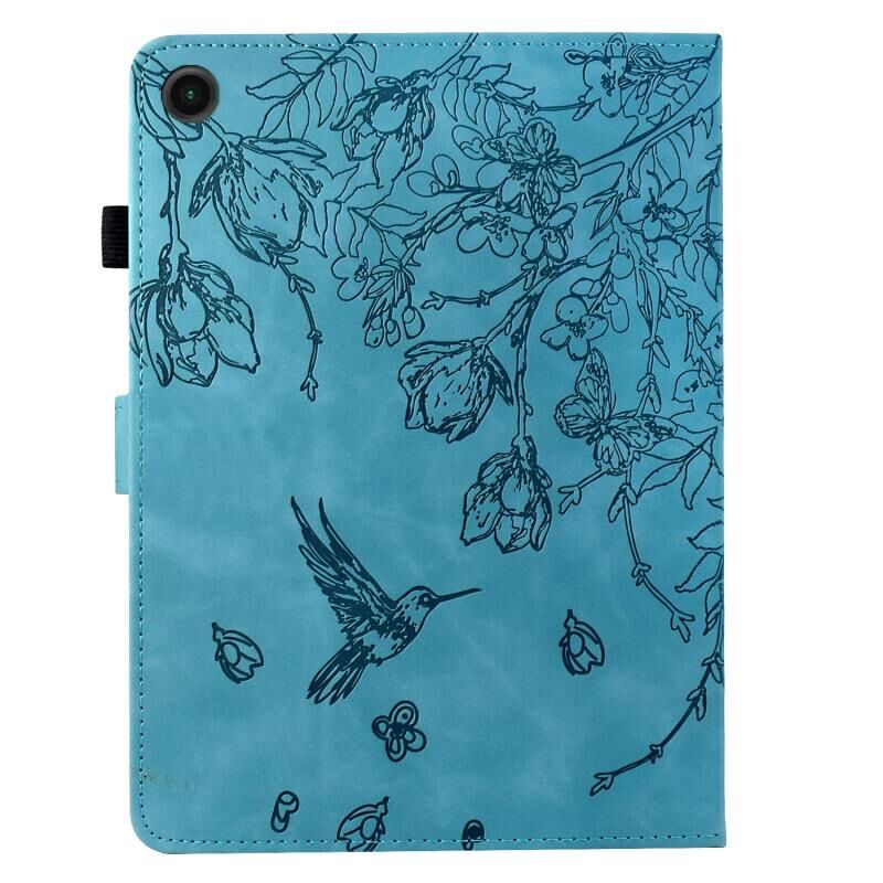 Θήκη ταμπλέτας Samsung Galaxy Tab A9 από δέρμα με ανάγλυφα λουλούδια και πουλιά (Μωβ)