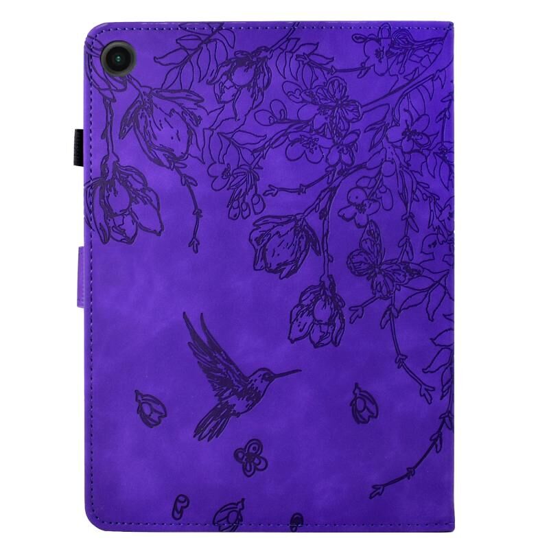 Θήκη ταμπλέτας Samsung Galaxy Tab A9 από δέρμα με ανάγλυφα λουλούδια και πουλιά (Μωβ)