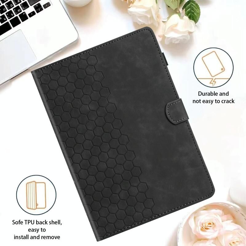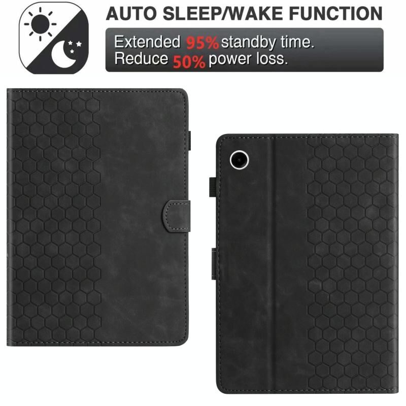 Για Samsung Galaxy Tab A9 Honeycomb ανάγλυφη δερμάτινη θήκη για έξυπνο tablet (μαύρο)