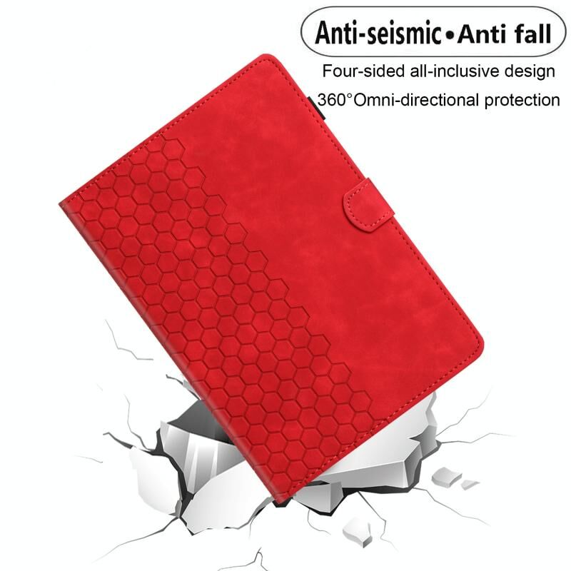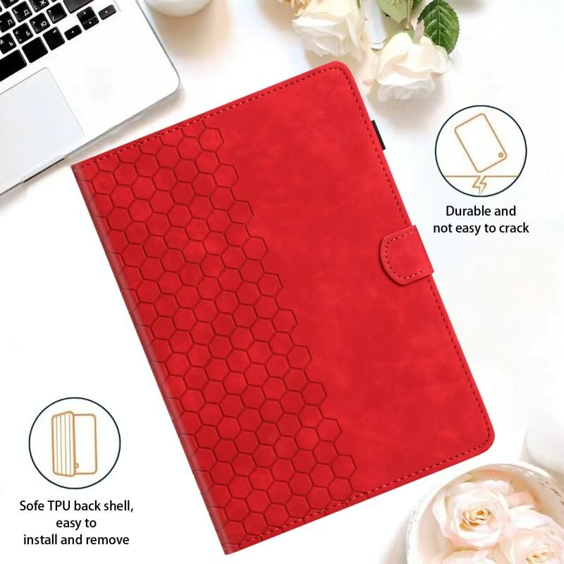 Για Samsung Galaxy Tab A9 Honeycomb ανάγλυφη δερμάτινη θήκη για έξυπνο tablet (κόκκινο)