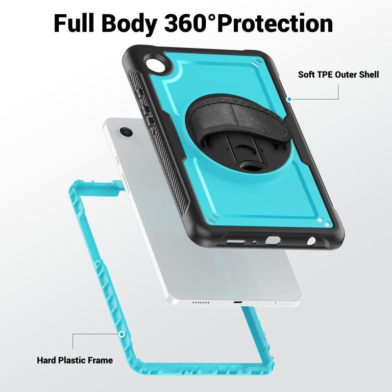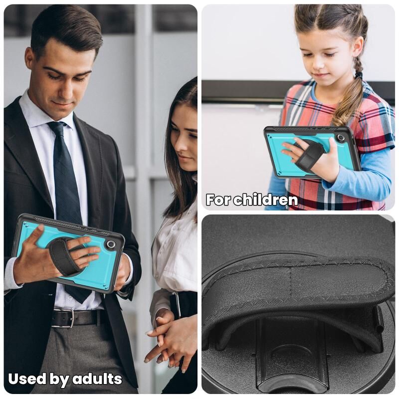 6. Εργονομικός Σχεδιασμός Λαβής: Εξοπλισμένο με άνετο λουρί χειρός στο πίσω μέρος, αυτή η θήκη tablet εξασφαλίζει σταθερή, εργονομική λαβή, ιδανική για παρατεταμένη χρήση ή ευκολία εν κινήσει.