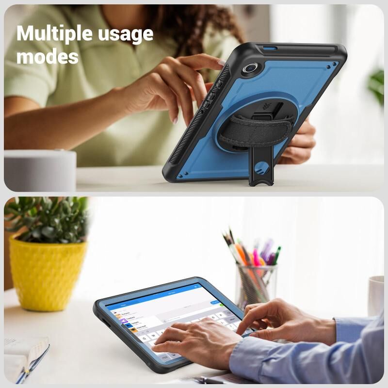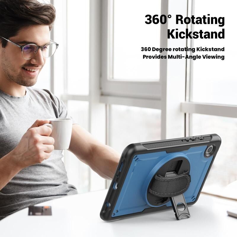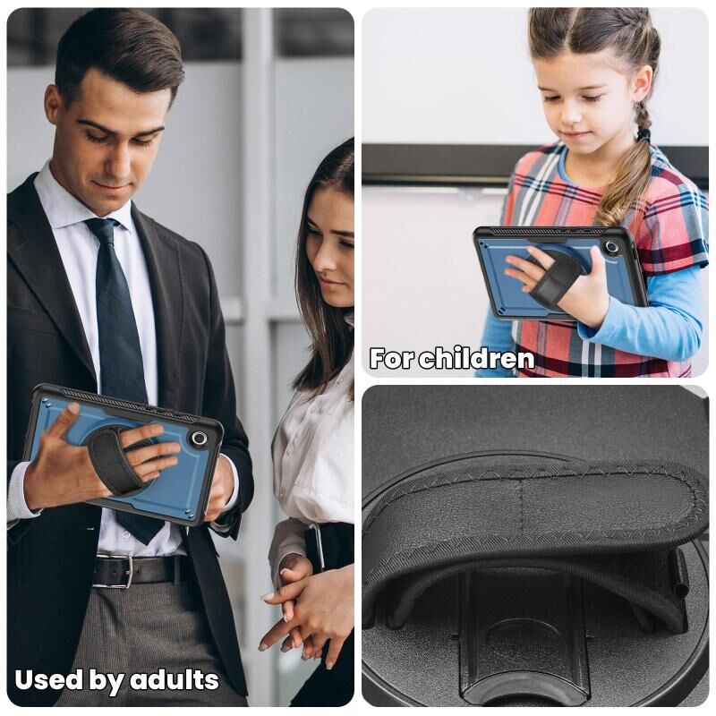 6. Εργονομικός Σχεδιασμός Λαβής: Εξοπλισμένο με άνετο λουρί χειρός στο πίσω μέρος, αυτή η θήκη tablet εξασφαλίζει σταθερή, εργονομική λαβή, ιδανική για παρατεταμένη χρήση ή ευκολία εν κινήσει.