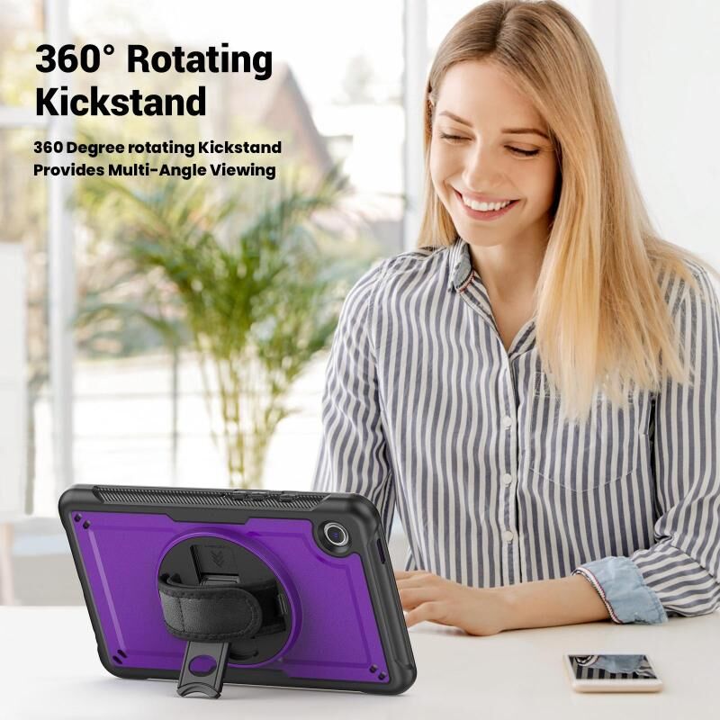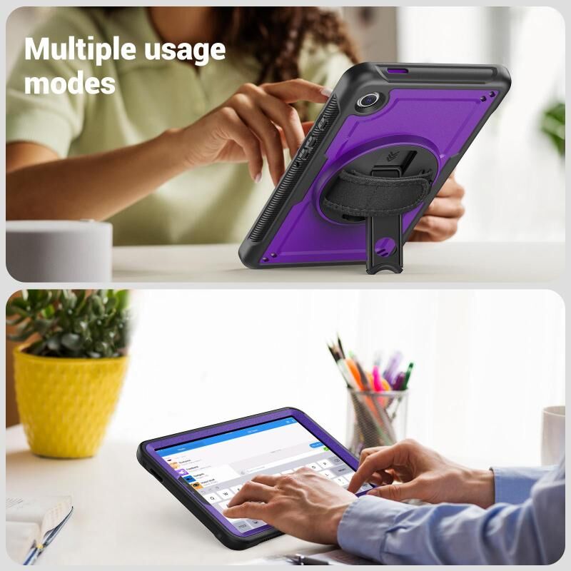 6. Εργονομικός Σχεδιασμός Λαβής: Εξοπλισμένο με άνετο λουρί χειρός στο πίσω μέρος, αυτή η θήκη tablet εξασφαλίζει σταθερή, εργονομική λαβή, ιδανική για παρατεταμένη χρήση ή ευκολία εν κινήσει.