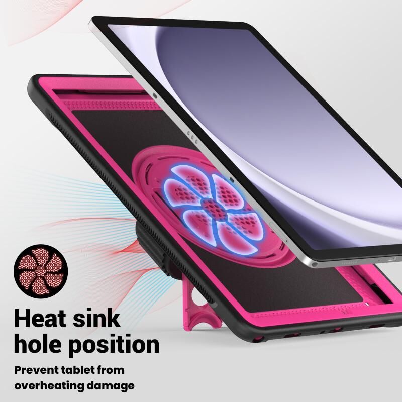 Για Samsung Galaxy Tab A9+ Honeycomb Hand Grip Turntable Stand Tablet Case (Rose Red)