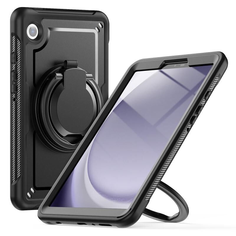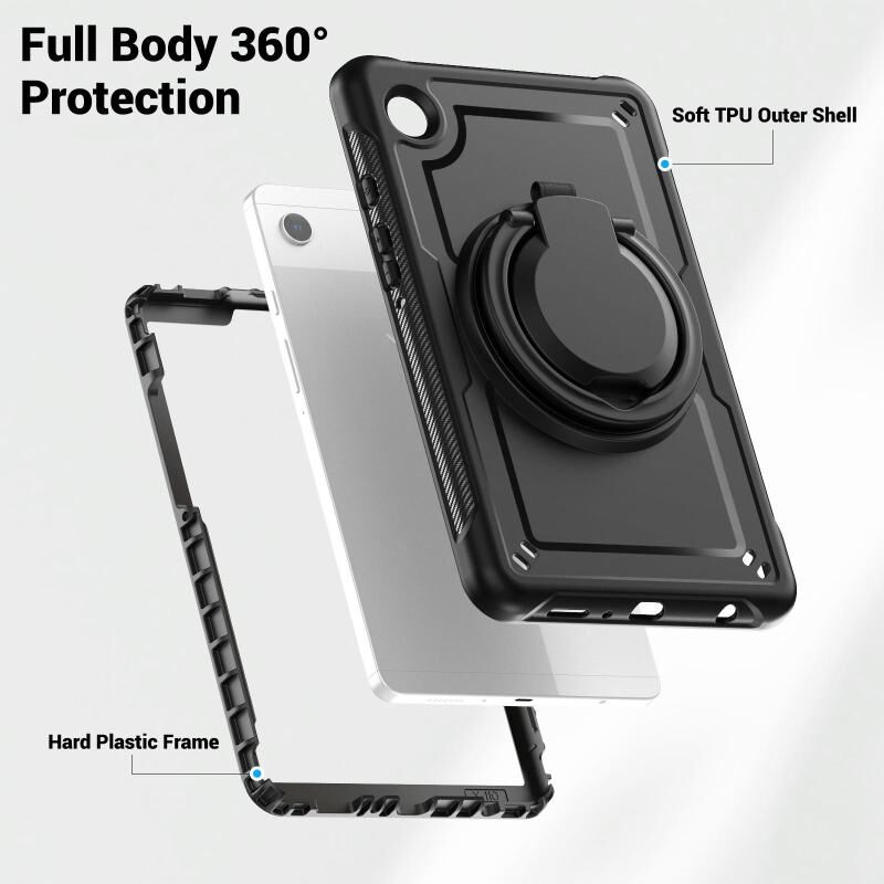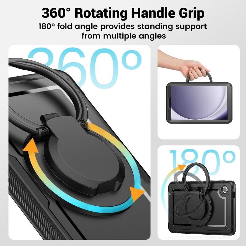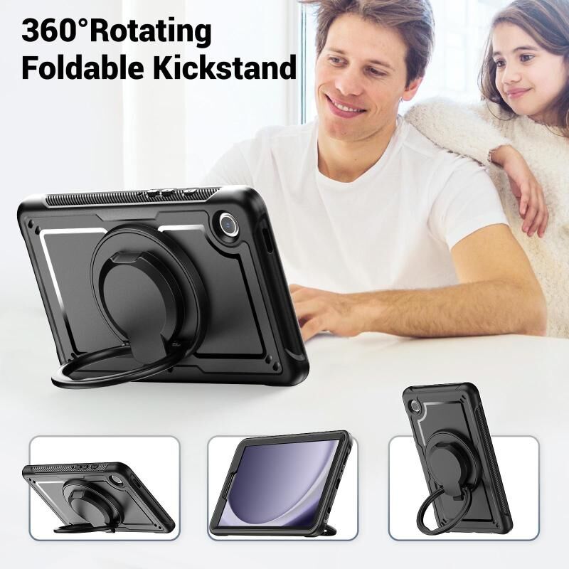 Για Samsung Galaxy Tab A9 Honeycomb Υβριδική θήκη για tablet με θήκη χειρολαβής & λουράκι (Μαύρο)