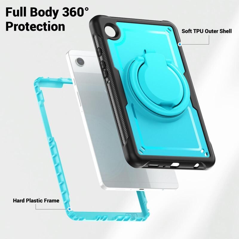 Για Samsung Galaxy Tab A9 Honeycomb Υβριδική θήκη για tablet με θήκη χειρολαβής & λουράκι (γαλάζιο)