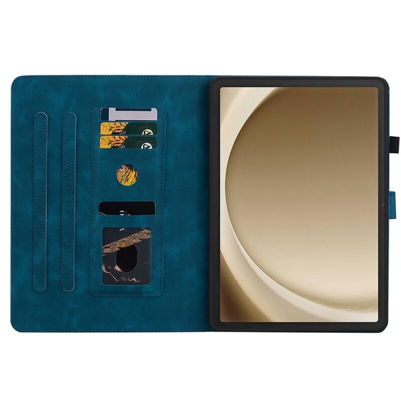 Για Samsung Galaxy Tab A9+ Lily ανάγλυφη δερμάτινη θήκη tablet (σκούρο μπλε)