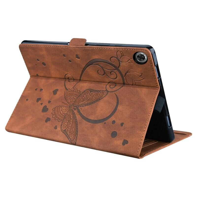 Για Samsung Galaxy Tab A9 Love Butterfly ανάγλυφη δερμάτινη θήκη tablet (καφέ)