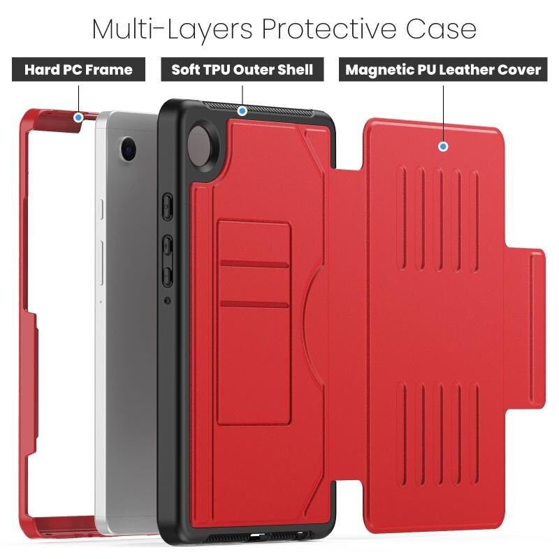 1. Ανθεκτικό Υλικό: Μαγνητική θήκη κατασκευασμένη από υψηλής ποιότητας PC + TPU και premium υφή τεχνητού δέρματος, λεπτό και ελαφρύ σχεδιασμό με εξαιρετική κατασκευή και αίσθηση. Αποτρέπει τις γρατζουνιές και τους χτυπήματα, τα δακτυλικά αποτυπώματα και τη σκόνη στην ταμπλέτα. Επίσης, καθαρίζεται εύκολα.