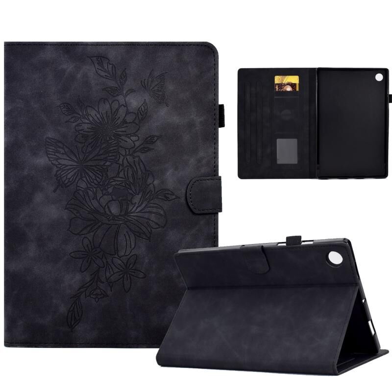 Θήκη Smart Tablet από Δέρμα με ανάγλυφο σχέδιο Πεταλούδας και Παιονίας για Samsung Galaxy Tab A9+ (Μωβ)