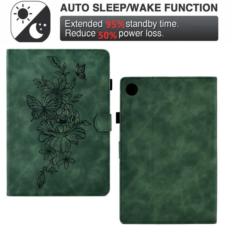 Θήκη Smart Tablet από Δέρμα με ανάγλυφο σχέδιο Πιονιών και Πεταλούδων για Samsung Galaxy Tab A9+ (Χακί)