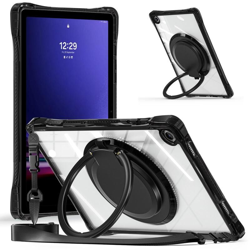 Για Samsung Galaxy Tab A9 + Περιστροφή δακτύλιος δακτύλιος λαβή TPU υβριδικό σαφές PC Tablet υπόθεση (μαύρο)