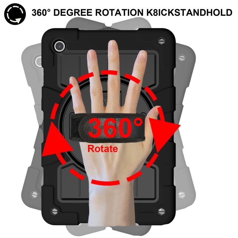 For Samsung Galaxy Tab A9+ Silicone Hybrid PC Shockproof Tablet Case with Shoulder Strap(Black)
