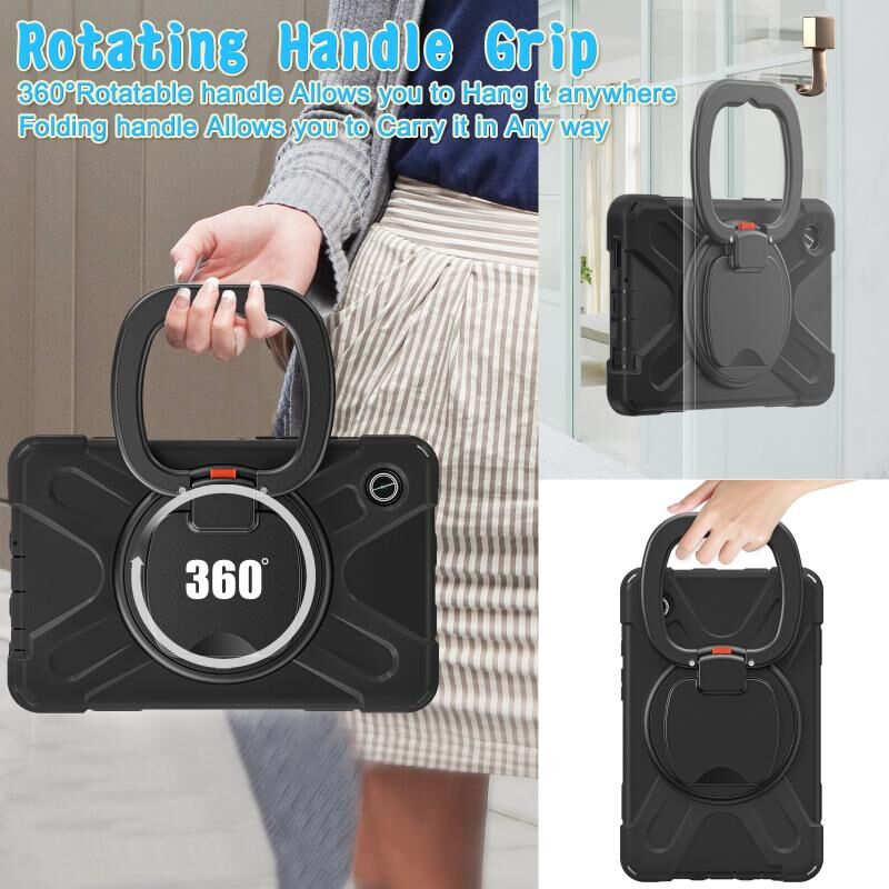 Για Samsung Galaxy Tab A9 Υβριδική θήκη για tablet PC σιλικόνης με θήκη & λουράκι ώμου (Μαύρο)