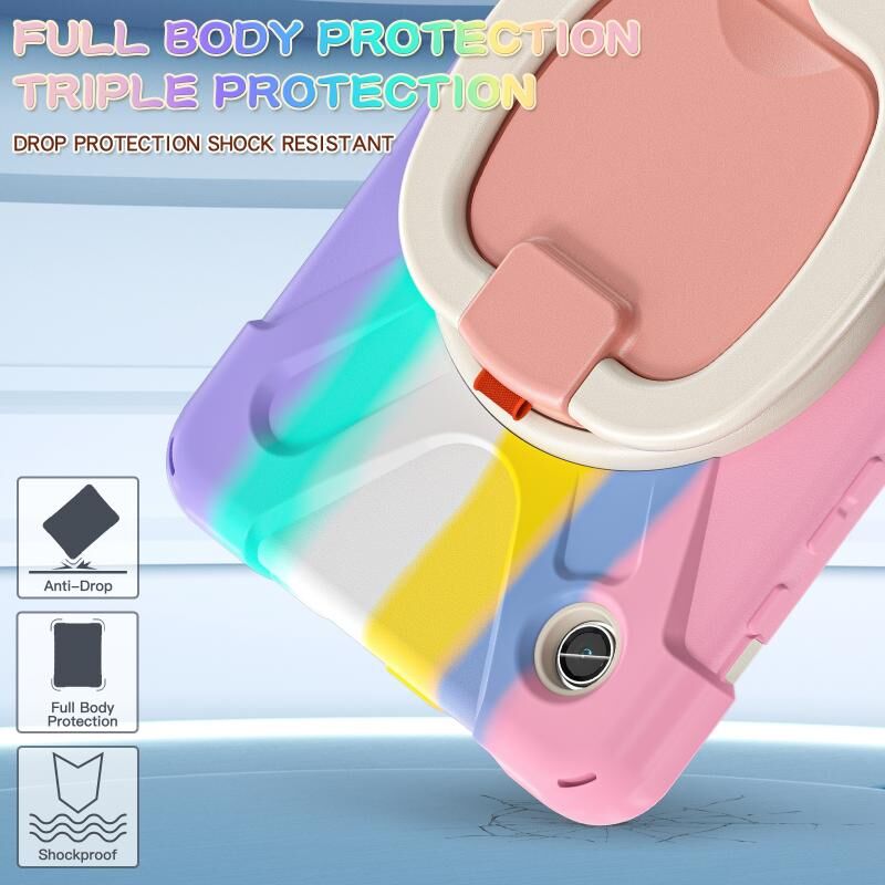 Για Samsung Galaxy Tab A9 σιλικόνης υβριδική θήκη tablet PC με θήκη & λουράκι ώμου (πολύχρωμο ροζ)