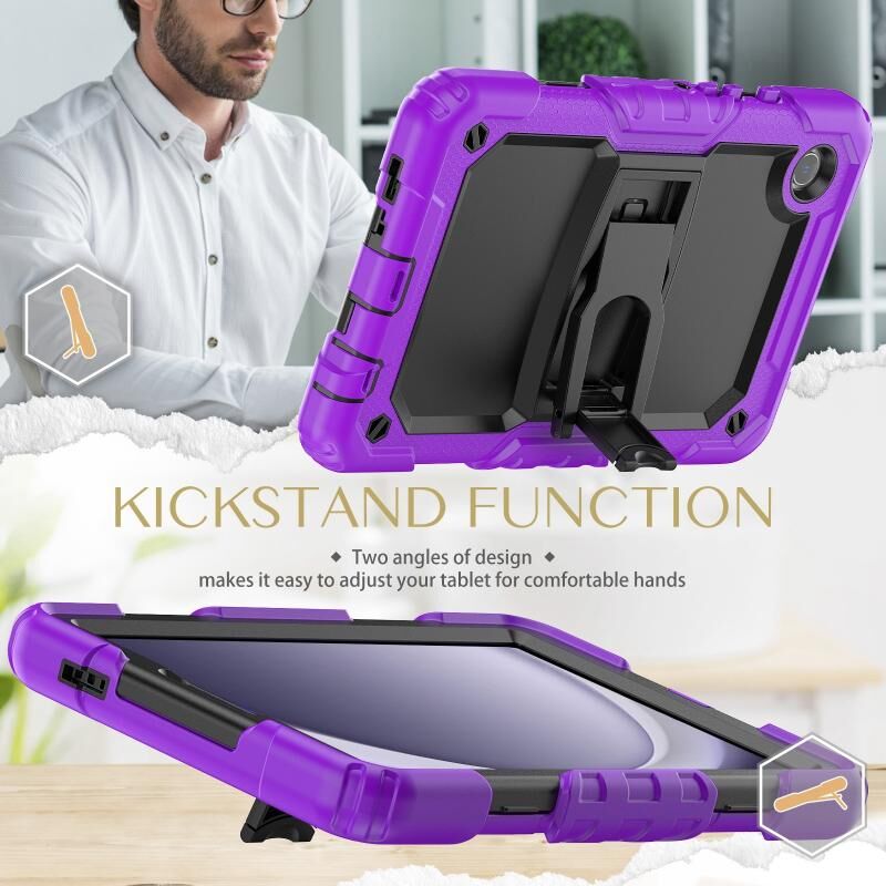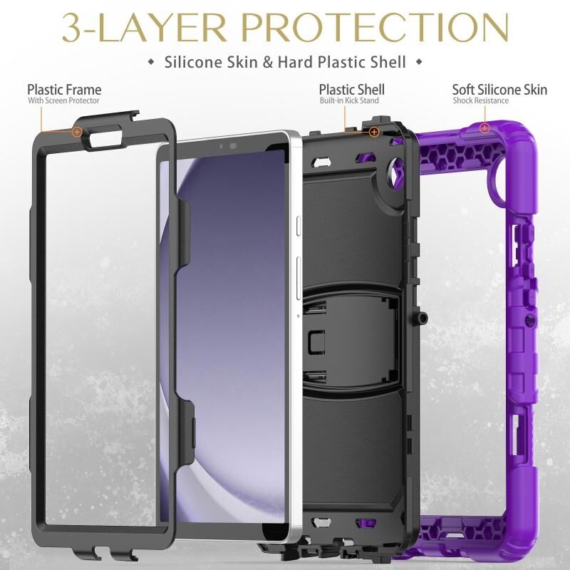 Για Samsung Galaxy Tab A9 σιλικόνης Υδραυλική θήκη tablet PC με λουράκι ώμου & θήκη (μωβ)