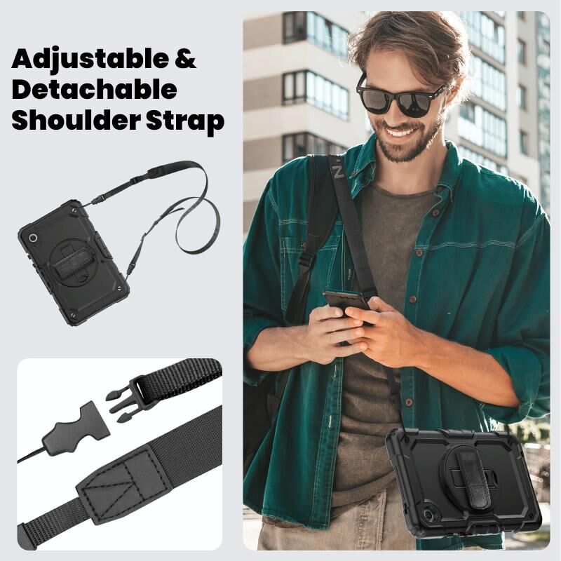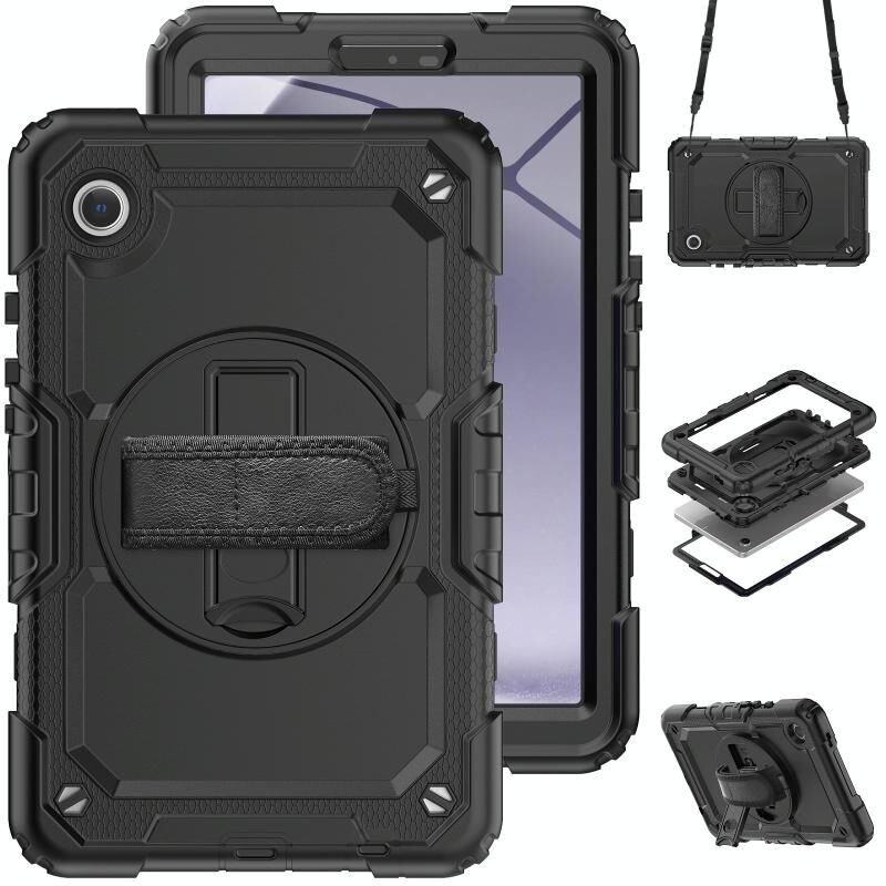 Για Samsung Galaxy Tab A9 σιλικόνη + PC θήκη tablet με λουράκι ώμου (Μαύρο)