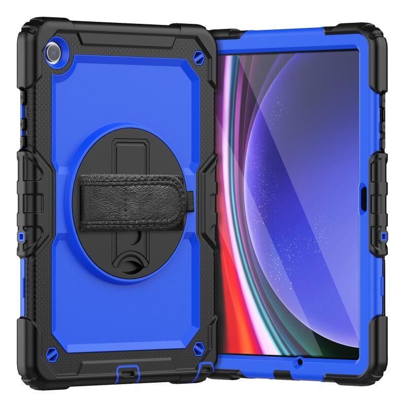 Για Samsung Galaxy Tab A9+ θήκη σιλικόνης + PC Tablet με λουράκι ώμου (Μαύρο + σκούρο μπλε)