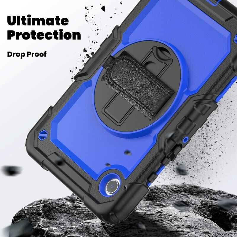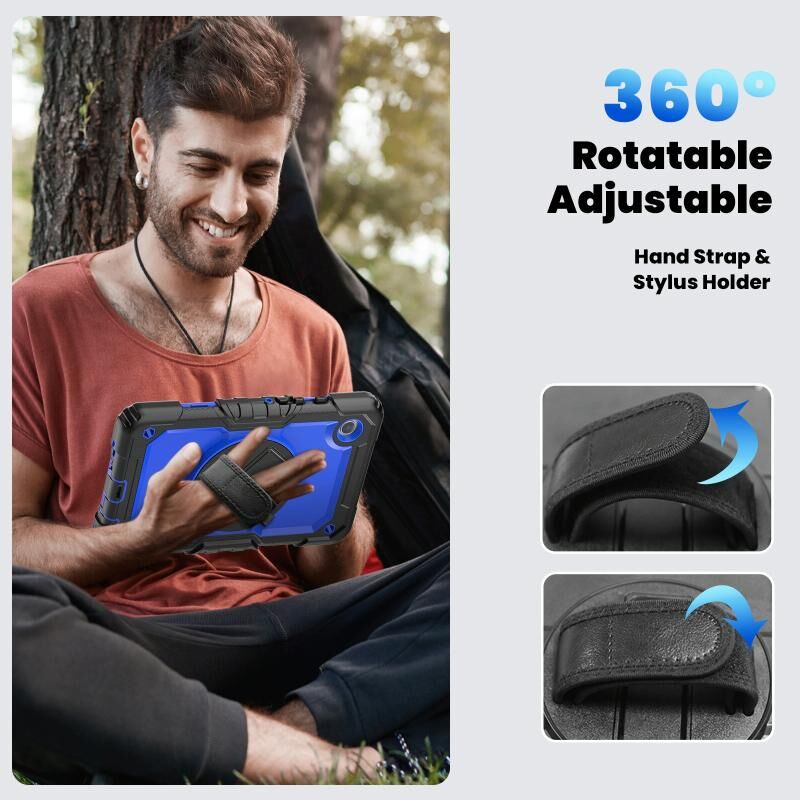 Για Samsung Galaxy Tab A9 σιλικόνη + PC θήκη tablet με λουράκι ώμου (μαύρο + σκούρο μπλε)