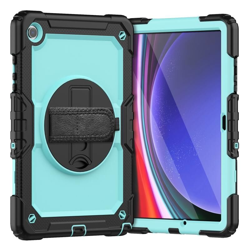Για το Samsung Galaxy Tab A9+ θήκη σιλικόνης + PC Tablet με λουράκι ώμου (Μαύρο + γαλάζιο)