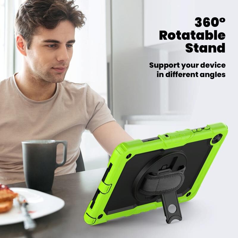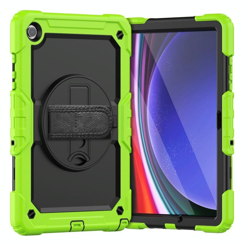 Για Samsung Galaxy Tab A9+ θήκη σιλικόνης + PC Tablet με λουράκι ώμου (κίτρινο πράσινο + μαύρο)