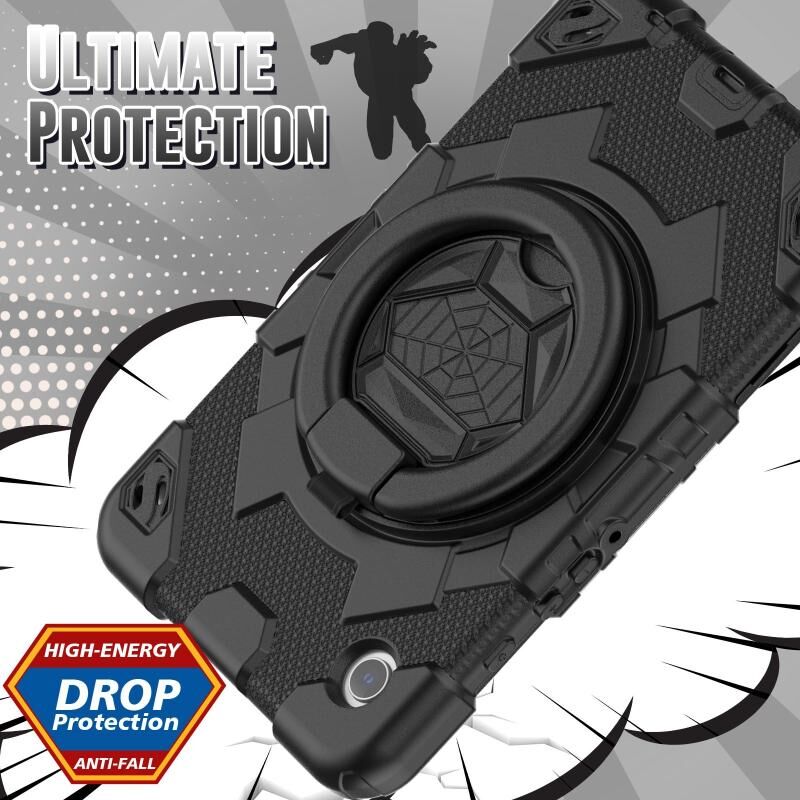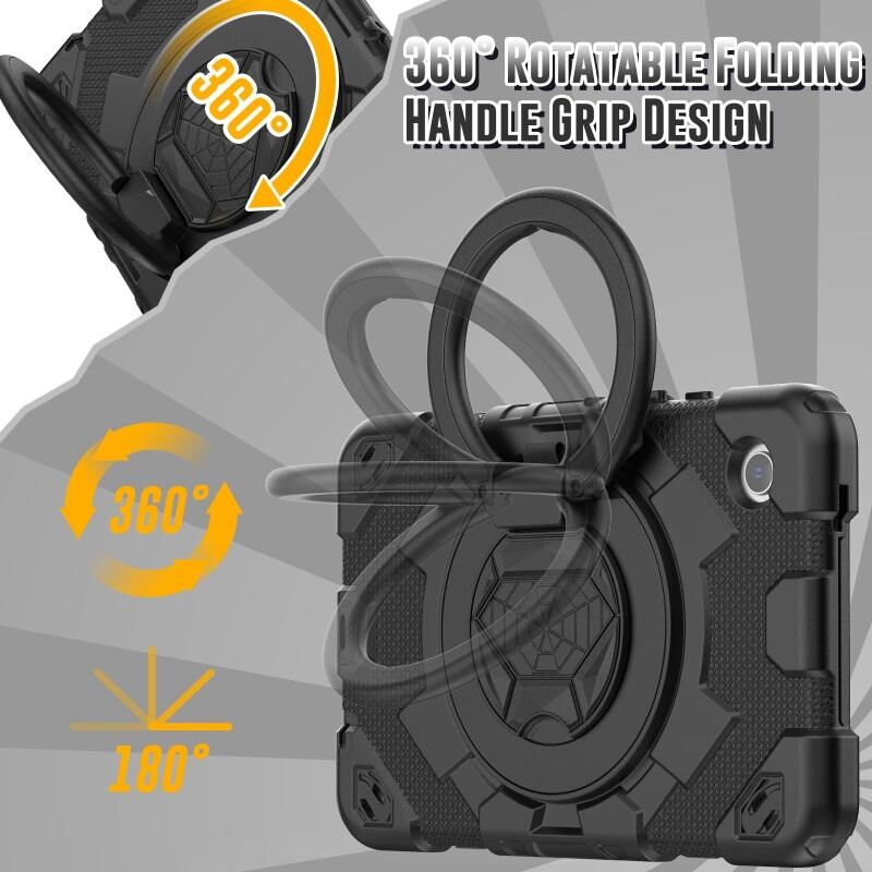 Θήκη ταμπλέτας υβριδική σιλικόνης PC για Samsung Galaxy Tab A9 με περιστρεφόμενη λαβή Spider (Μαύρο)