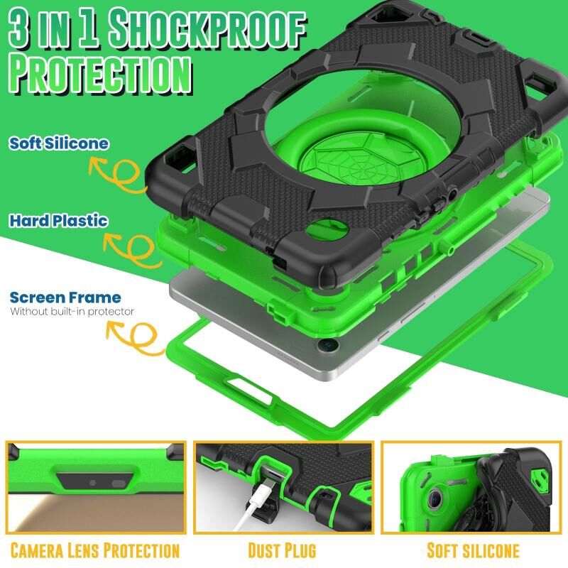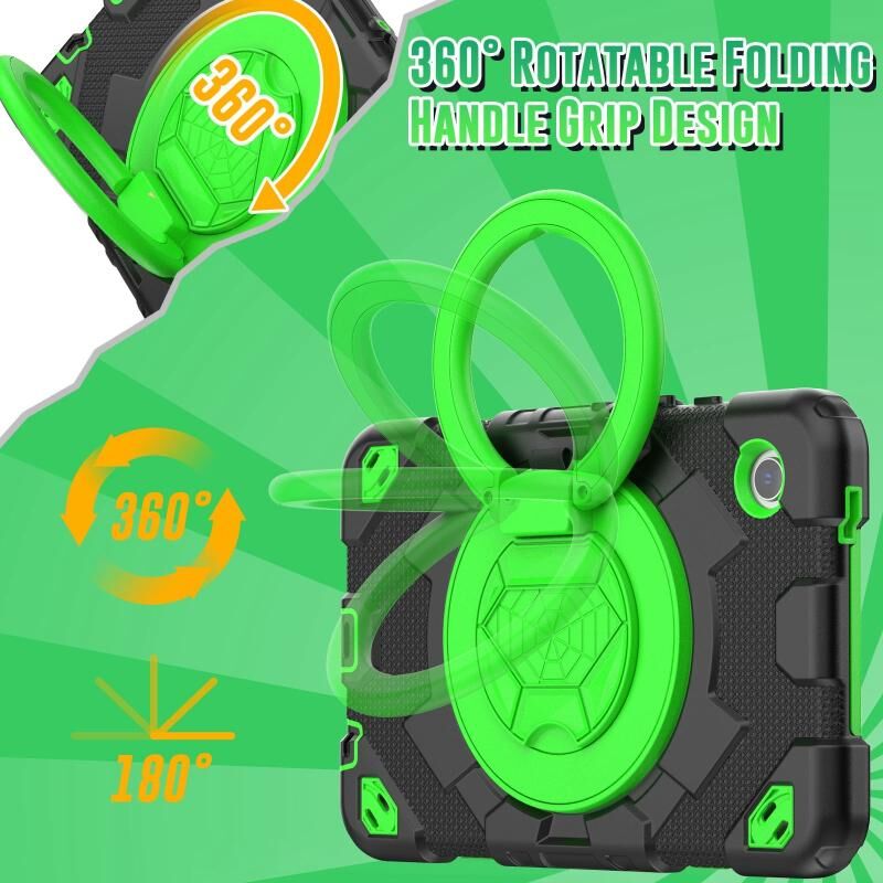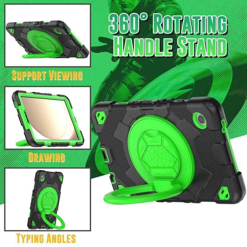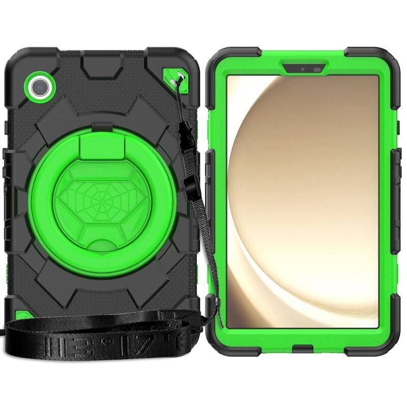 Θήκη ταμπλέτας υβριδική σιλικόνης PC για Samsung Galaxy Tab A9 με περιστρεφόμενη λαβή Spider (Μαύρο)