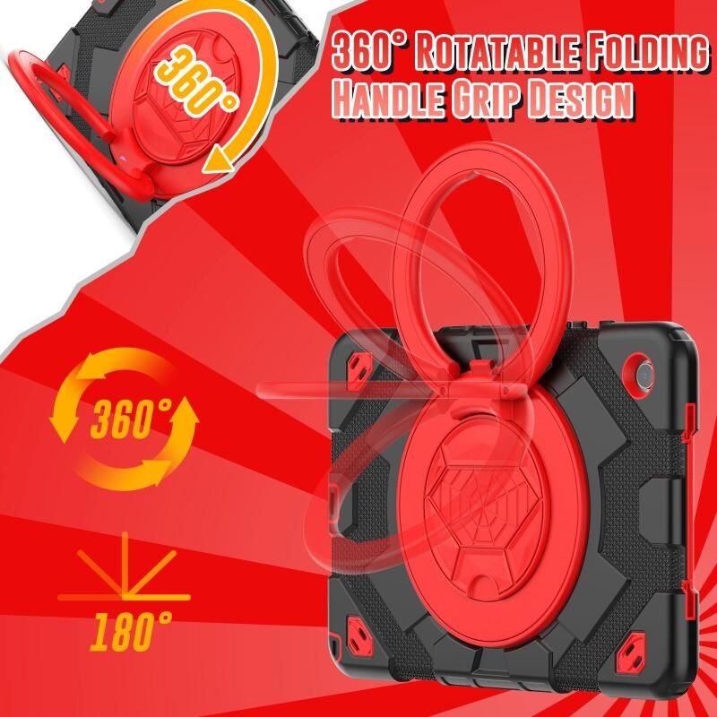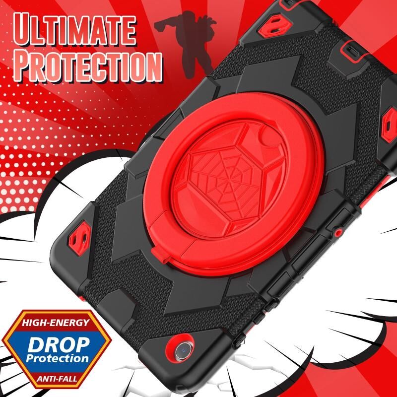 Θήκη ταμπλέτας υβριδική σιλικόνης PC για Samsung Galaxy Tab A9+ με περιστρεφόμενη λαβή Spider (Κίτρινο Κόκκινο)