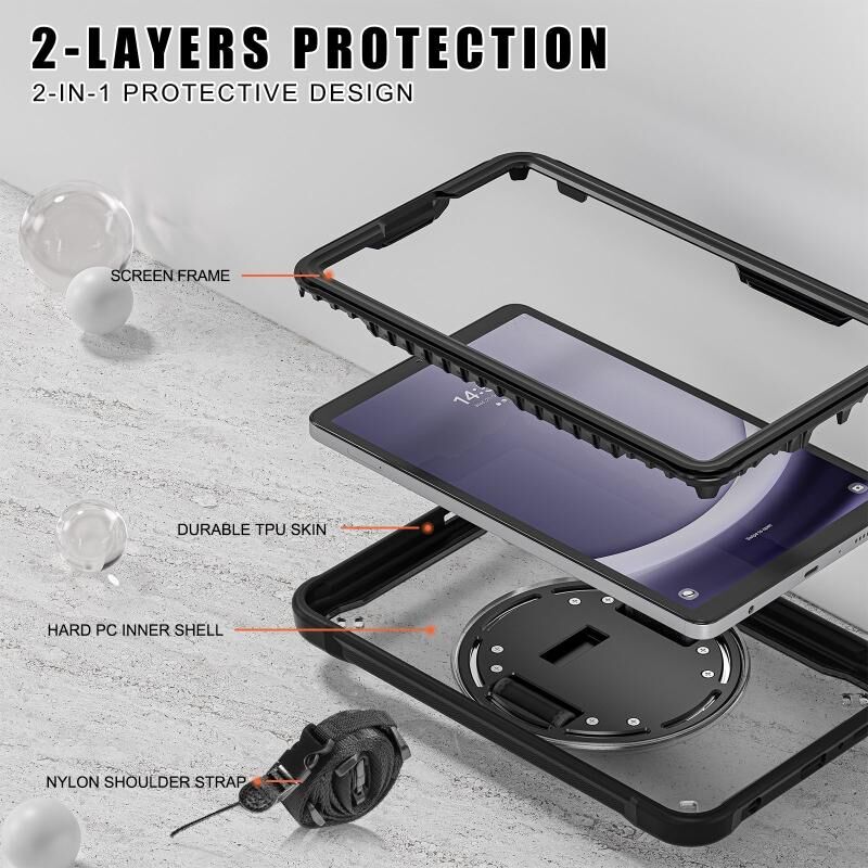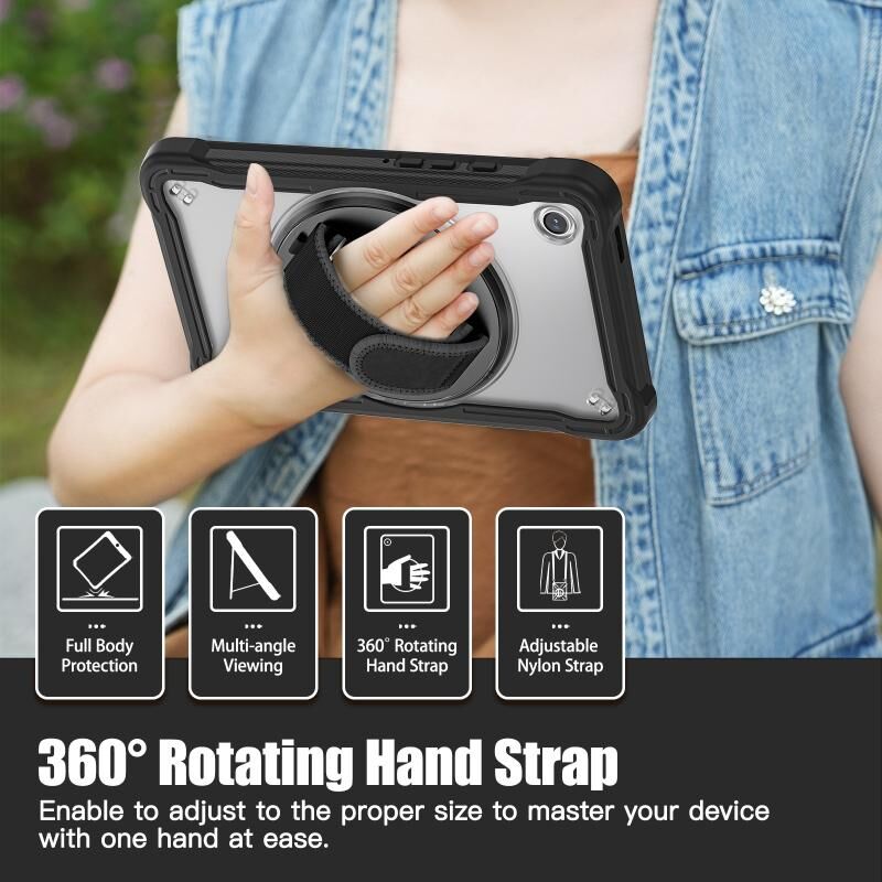 Θήκη ταμπλέτας υβριδική βαρέως τύπου με λουρί για Samsung Galaxy Tab A9 X110/X115, ισχυρή λαβή Sailor (Διαφανής)