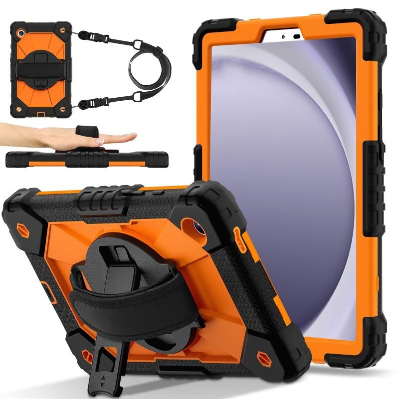 Για Samsung Galaxy Tab A9 X115 αντίθεση χρώμα ρομπότ C2 σιλικόνης υβριδικό PC Tablet υπόθεση (μαύρο πορτοκαλί)