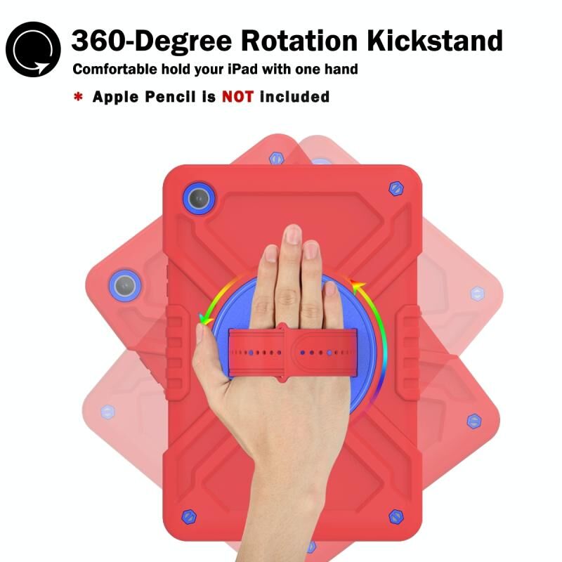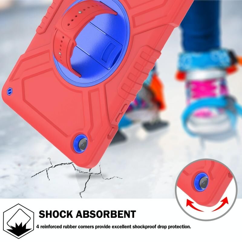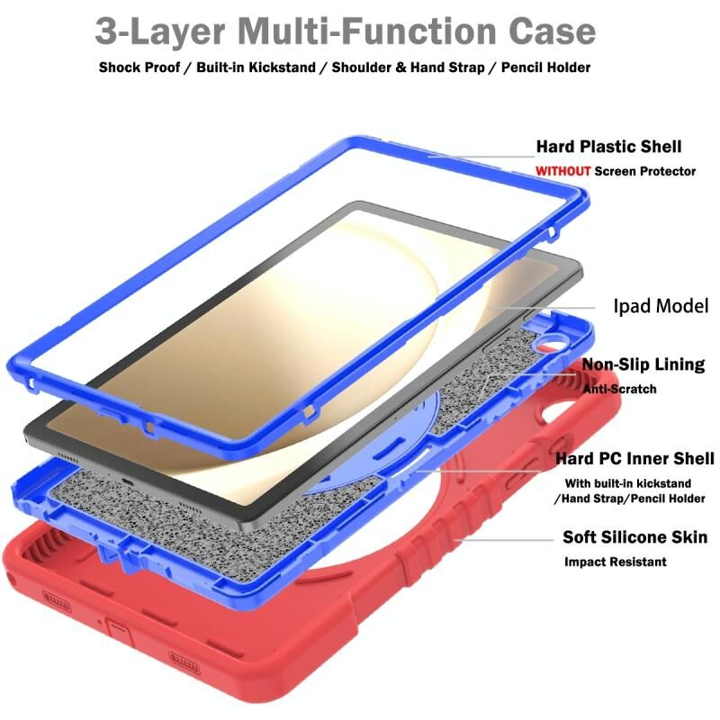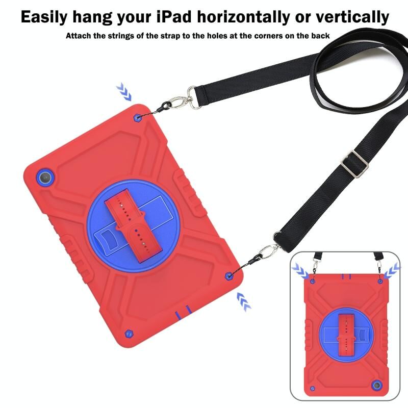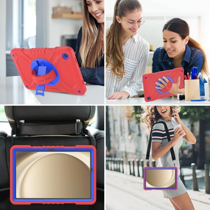Για Samsung Galaxy Tab A9+ X210 X Rotation PC υβριδική θήκη σιλικόνης για tablet με λουράκι (κόκκινο μπλε)