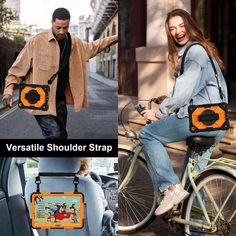 6. Ρυθμιζόμενος ιμάντας ώμου: Η ρυθμιζόμενη λαβή ώμου μπορεί να είναι κεκλιμένη και να απελευθερώσει πλήρως τα χέρια σας. Αυτή η λειτουργία είναι ιδανική για ταξίδια, παραγγελίες σε εστιατόρια, παρουσίαση προϊόντων στο σπίτι, λειτουργία μηχανικού σε εξωτερικούς χώρους, δάσκαλο κ.λπ. Επίσης, ο ιμάντας σας επιτρέπει να κρεμάσετε το tablet σας πίσω από το κάθισμα του αυτοκινήτου για ψυχαγωγία των παιδιών.