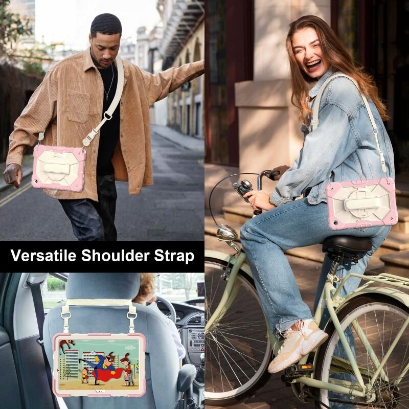 6. Ρυθμιζόμενος ιμάντας ώμου: Η ρυθμιζόμενη λαβή ώμου μπορεί να είναι κεκλιμένη και να απελευθερώσει πλήρως τα χέρια σας. Αυτή η λειτουργία είναι ιδανική για ταξίδια, παραγγελίες σε εστιατόρια, παρουσίαση προϊόντων στο σπίτι, λειτουργία μηχανικού σε εξωτερικούς χώρους, δάσκαλο κ.λπ. Επίσης, ο ιμάντας σας επιτρέπει να κρεμάσετε το tablet σας πίσω από το κάθισμα του αυτοκινήτου για ψυχαγωγία των παιδιών.