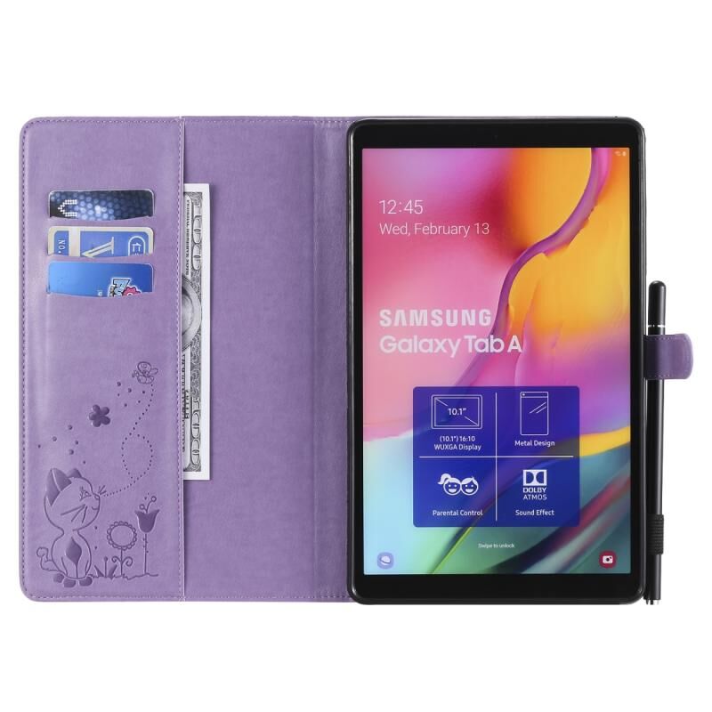 Για Samsung Galaxy Tab A9.7 T550, θήκη δερμάτινη οριζόντια, με ανάγλυφο σχέδιο Cat Bee, αντικραδασμική, προστατευτική για tablet PC με βάση στήριξης, θήκες για κάρτες, πορτοφόλι, θήκη για στυλό & λειτουργία αφύπνισης/ύπνου (Πράσινο).