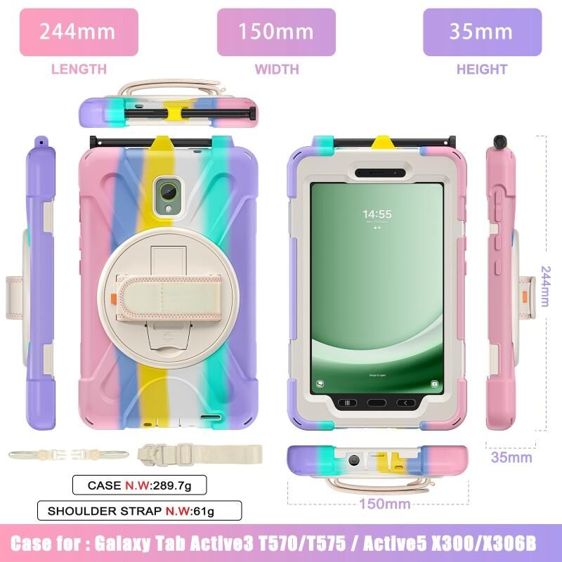 Για Samsung Galaxy Tab Active5 X300 Rotary Grip σιλικόνης υβριδικό PC Tablet υπόθεση με λουράκι ώμου (πολύχρωμο ροζ)