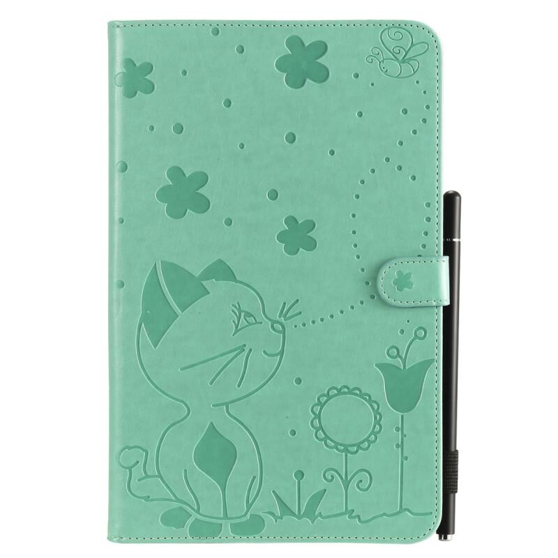 Θήκη δερμάτινη οριζόντια, με αναγλυφία σχέδιο "Cat Bee", αντικραδασμική, για Samsung Galaxy Tab E9.6 T560, με βάση στήριξης, θήκες για κάρτες, πορτοφόλι και θήκη για στυλό (Πράσινη).