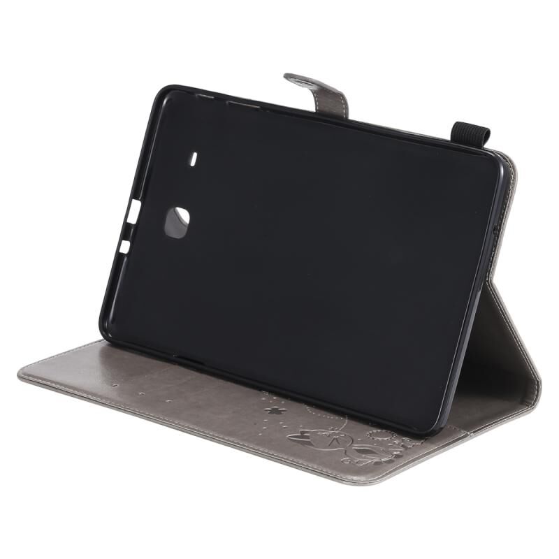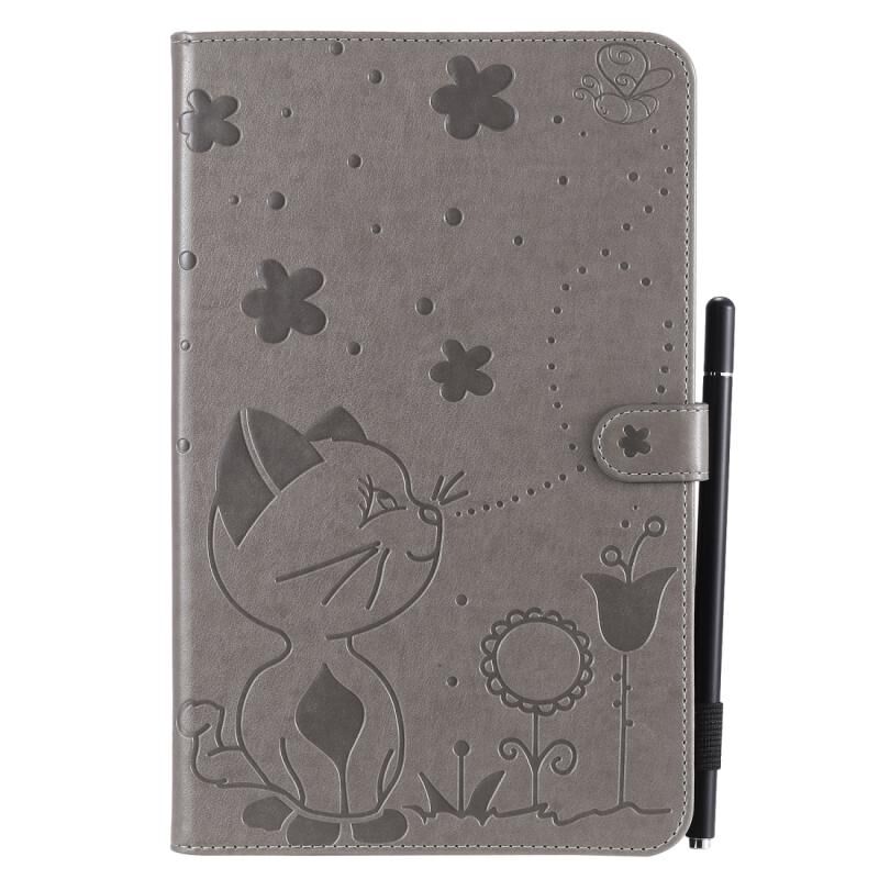 Θήκη δερμάτινη οριζόντια, με αναγλυφία σχέδιο "Cat Bee", αντικραδασμική, για Samsung Galaxy Tab E9.6 T560, με βάση στήριξης, θήκες για κάρτες, πορτοφόλι και θήκη για στυλό (Πράσινη).