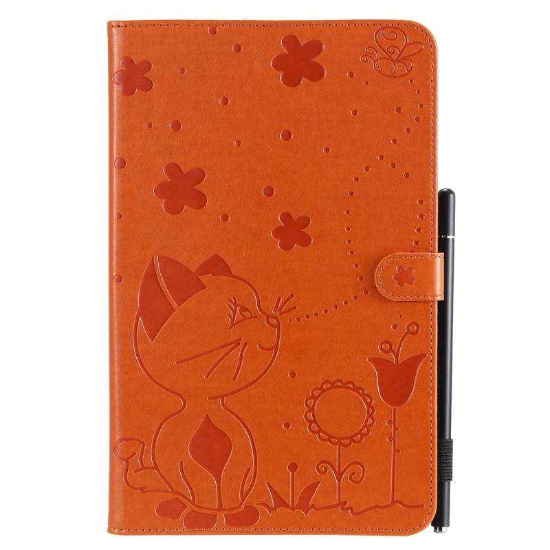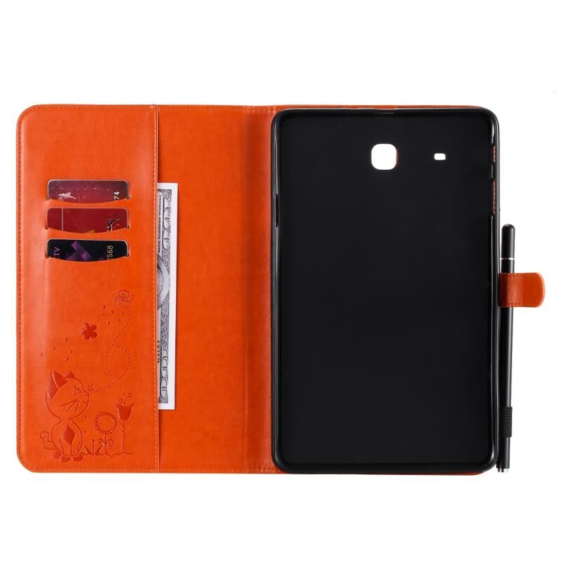 Θήκη δερμάτινη οριζόντια, με αναγλυφία σχέδιο "Cat Bee", αντικραδασμική, για Samsung Galaxy Tab E9.6 T560, με βάση στήριξης, θήκες για κάρτες, πορτοφόλι και θήκη για στυλό (Πράσινη).