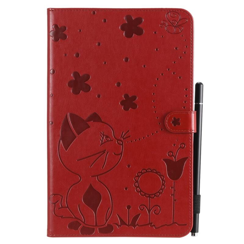 For Samsung Galaxy Tab E9.6 T560 Cat Bee Embossing Pattern Shockproof Table PC Protective Horizontal Flip Leather Case with Holder & Card Slots & Wallet & Pen Slot(Red)