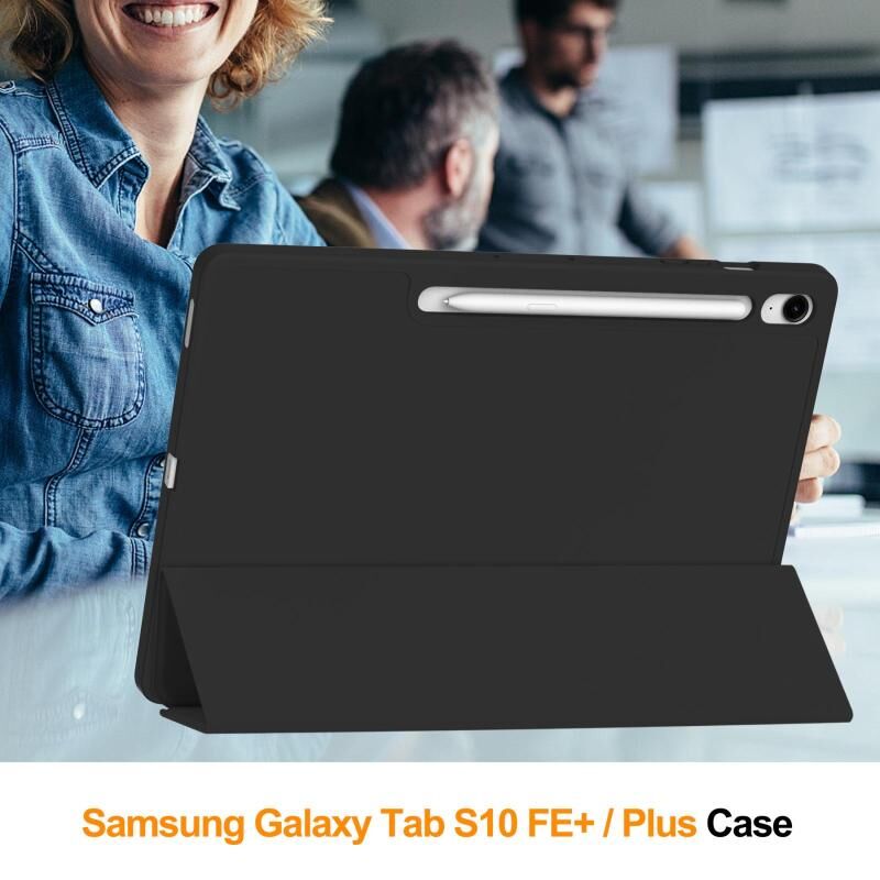 Θήκη για Samsung Galaxy Tab S10 FE+ 3-Δίπλωτη, Καθαρό Χρώμα, Δερμάτινη με έξυπνη προστασία TPU και θήκη για στυλό (Μαύρο)
