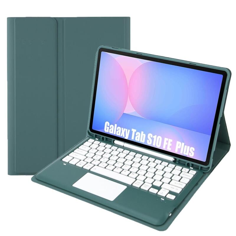 For Samsung Galaxy Tab S10 FE+ A820B-A Touch Pad Detachable Bluetooth Keyboard Leather Tablet Case(Dark Green)
