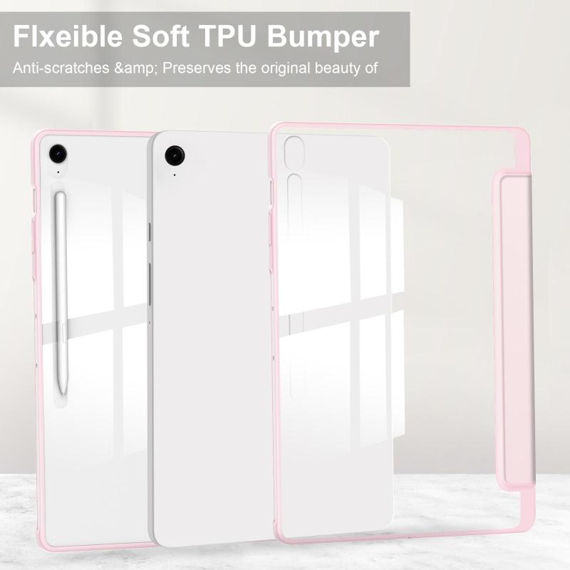 For Samsung Galaxy Tab S10 FE+ Acrylic 3-folding Smart Leather Tablet Case with Pen Slot(Pink)