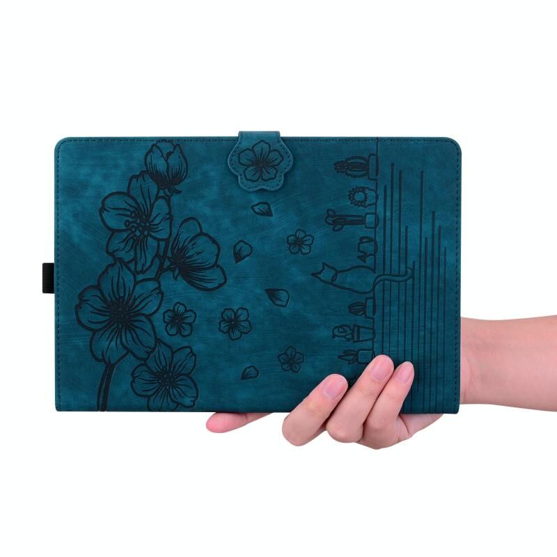 Θήκη ταμπλέτας Samsung Galaxy Tab S10 FE+ από δέρμα με ανάγλυφο σχέδιο κινούμενων σχεδίων Sakura Cat (Πράσινο)
