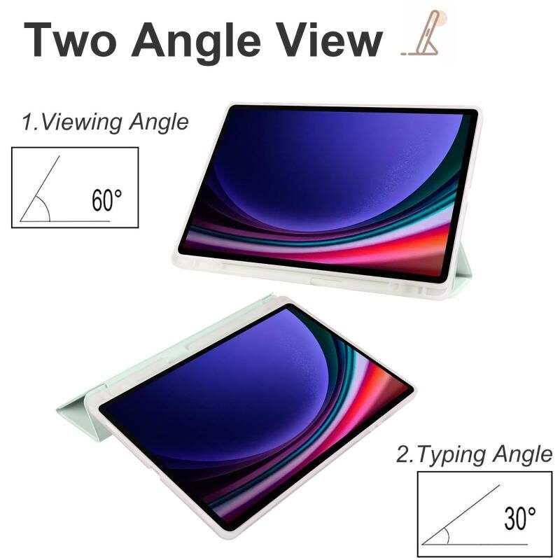 For Samsung Galaxy Tab S10 FE / S9 3-folding Transparent TPU Smart Leather Tablet Case with Pen Slot(Light Green)