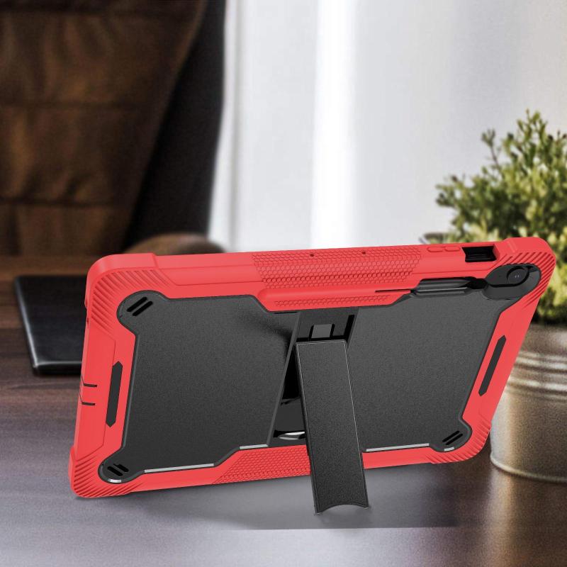 For Samsung Galaxy Tab S10 FE+ Shockproof Silicone Hybrid PC Tablet Case with Holder(Black Red)