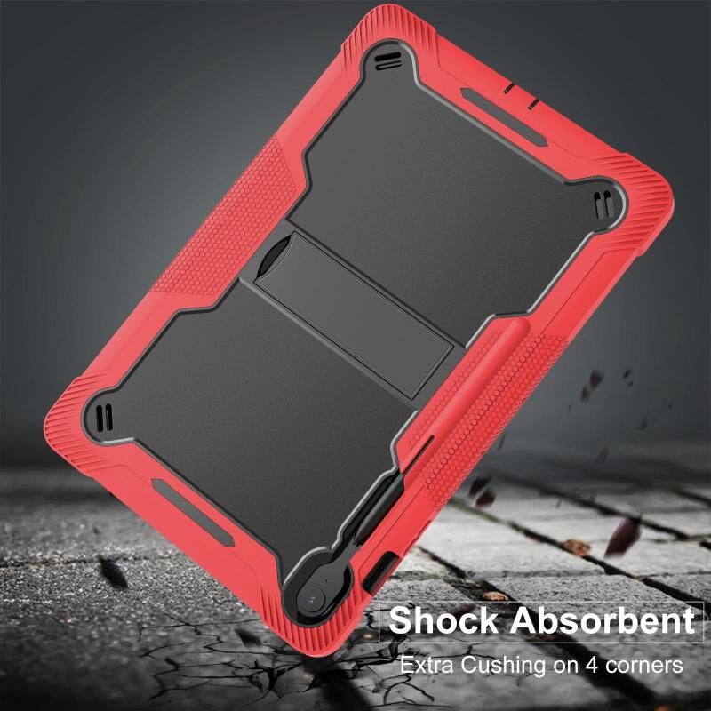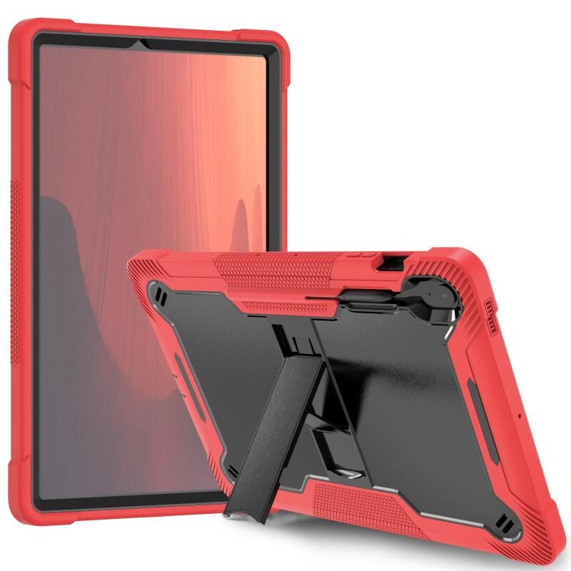 Θήκη για Samsung Galaxy Tab S10 FE+ αντικραδασμική, υβριδική σιλικόνης και PC με βάση στήριξης (Μαύρο Κόκκινο)